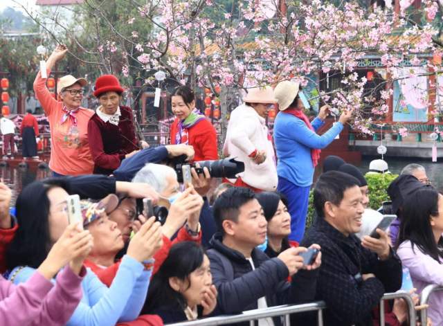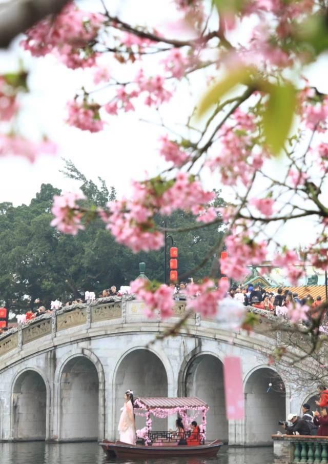 A cherry blossom festival kicked off at Guangzhou's Baomo Garden, a classical garden with Lingnan characteristics, on March 9 and will run until March 23. The Hanfu performance recreated ancient flower appreciation scenes of the Han dynasty and attracted crowds of visitors.