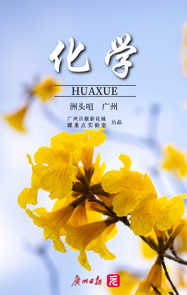 Yellow trumpet flowers at the Zhoutouzui Park (Chemistry textbook)