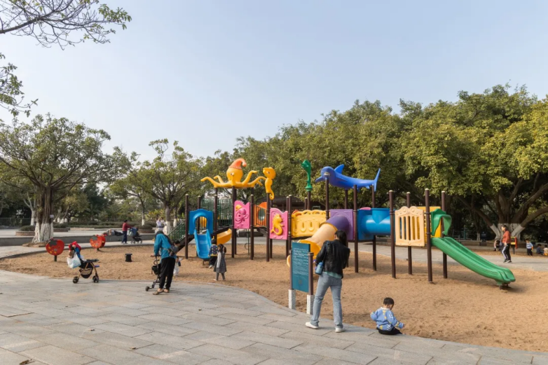 And right opposite to a row of bald cypress trees, a children’s playground and a sand pit are open to the public for free.