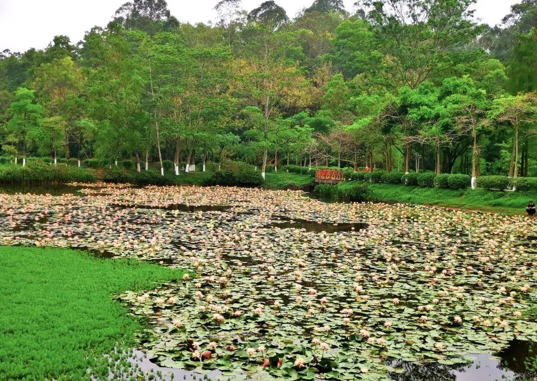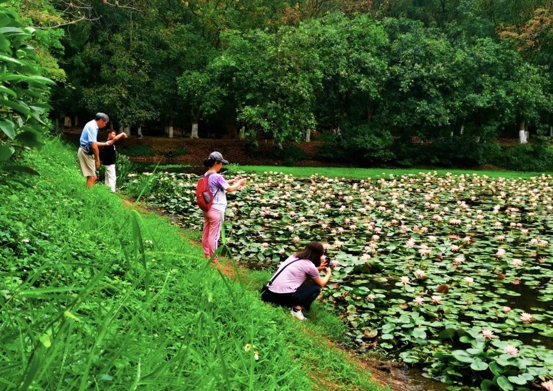 Dafushan Forest Park (大夫山森林公园) in Panyu district is now flourishing with a sea of pinkish water lilies, attracting many visitors to capture the picturesque scene.