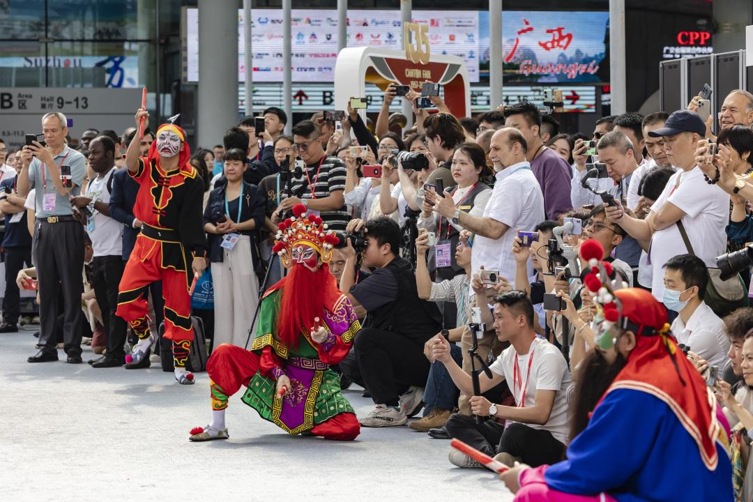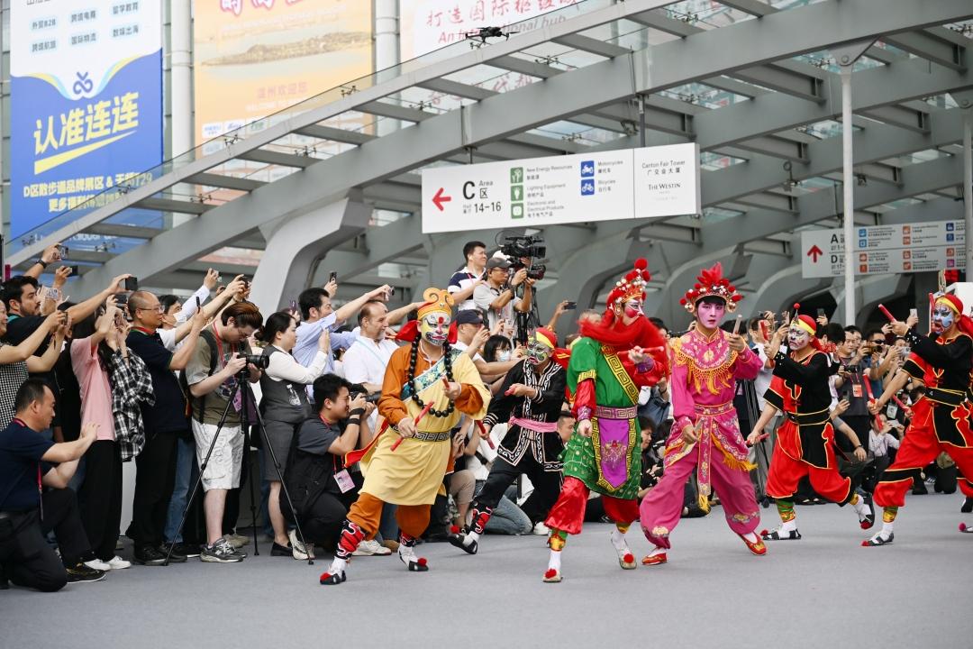 On the opening day of the 135th Canton Fair, Nanshan Yingge dance team from Guangdong's Puning city presented a wonderful Yinge Dance performance, wowing a crowd of domestic and international attendees. The 135th Canton Fair kicked off on April 15 and will last until May 5.