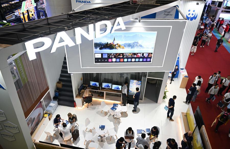 People learn about TV products of Panda at the 135th session of the China Import and Export Fair, also known as the Canton Fair, in Guangzhou, South China's Guangdong province, April 17, 2024. (Xinhua/Deng Hua)