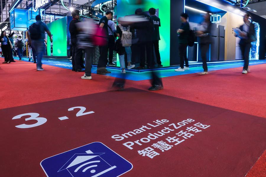 People visit the smart life product zone of the 135th session of the China Import and Export Fair, also known as the Canton Fair, in Guangzhou, South China's Guangdong province, April 15, 2024. (Xinhua/Liu Dawei)