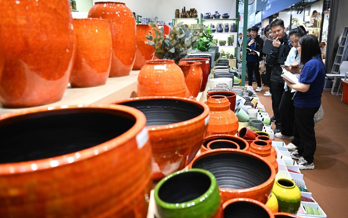 This photo taken on April 23, 2024 shows a booth of pottery and porcelain at the second phase of the 135th Canton Fair in Guangzhou, South China's Guangdong province. (Photo/Xinhua)