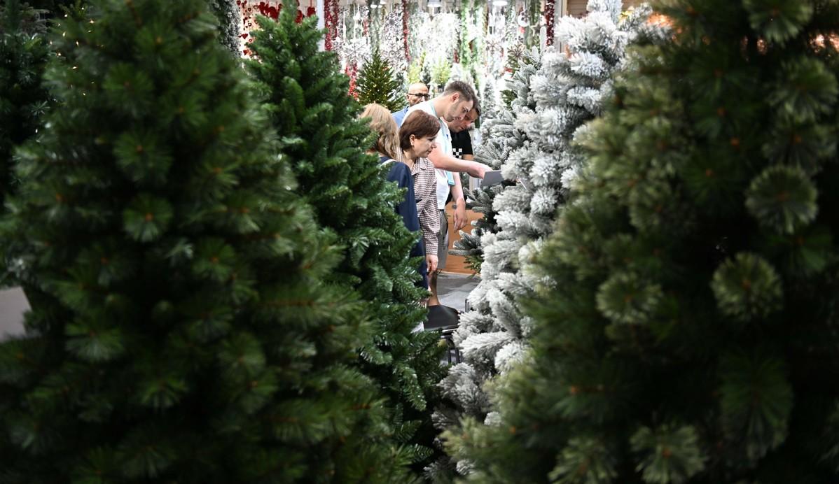 Purchasers visit a booth of artificial trees at the second phase of the 135th Canton Fair in Guangzhou, South China's Guangdong province, April 23, 2024. (Photo/Xinhua)