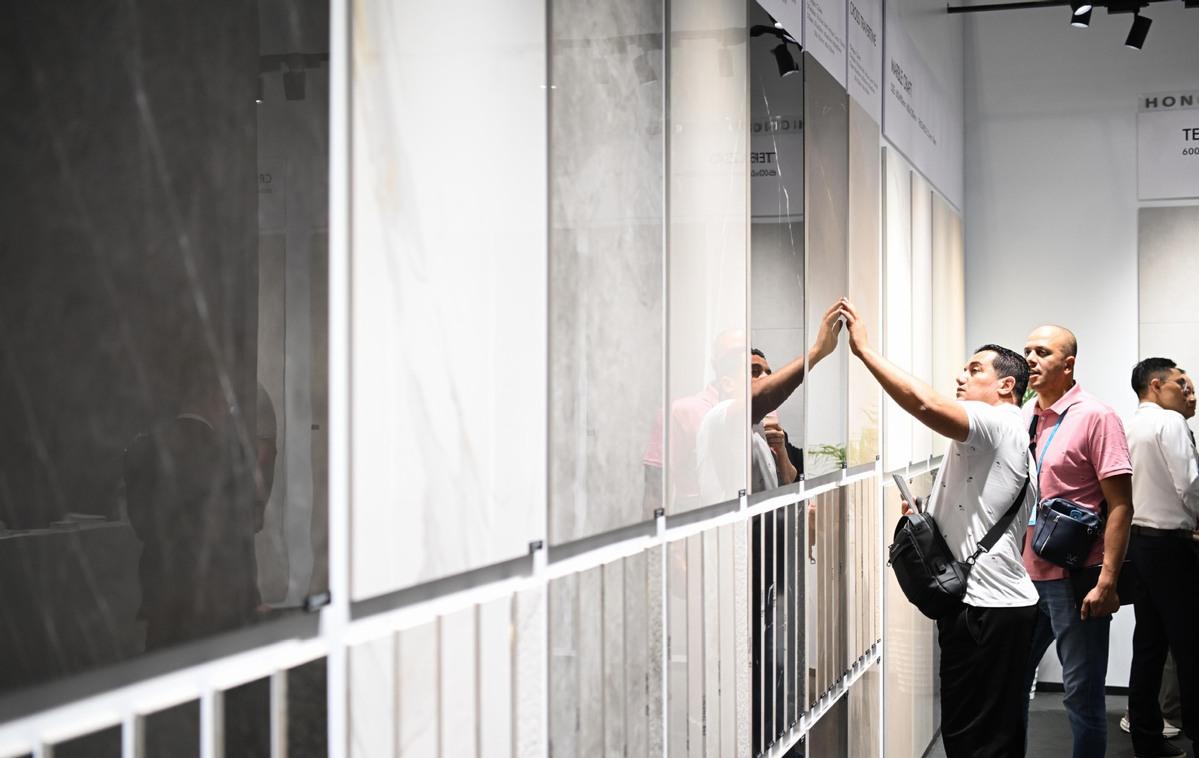 Purchasers visit a booth of building materials at the second phase of the 135th Canton Fair in Guangzhou, South China's Guangdong province, April 23, 2024. (Photo/Xinhua)