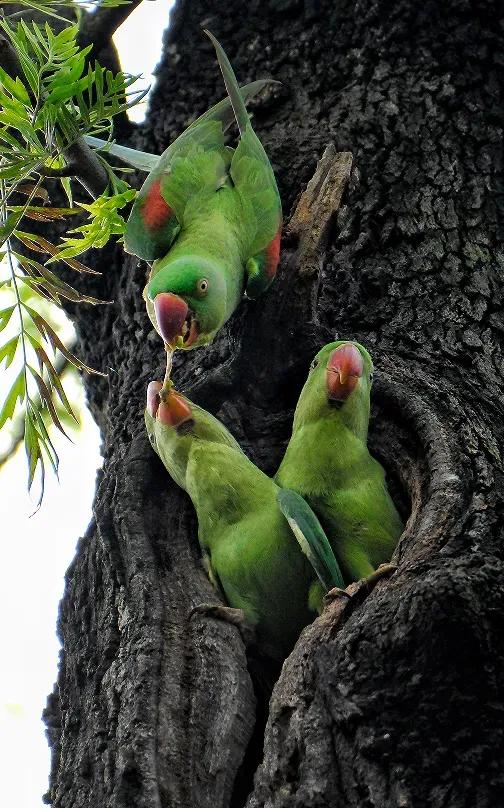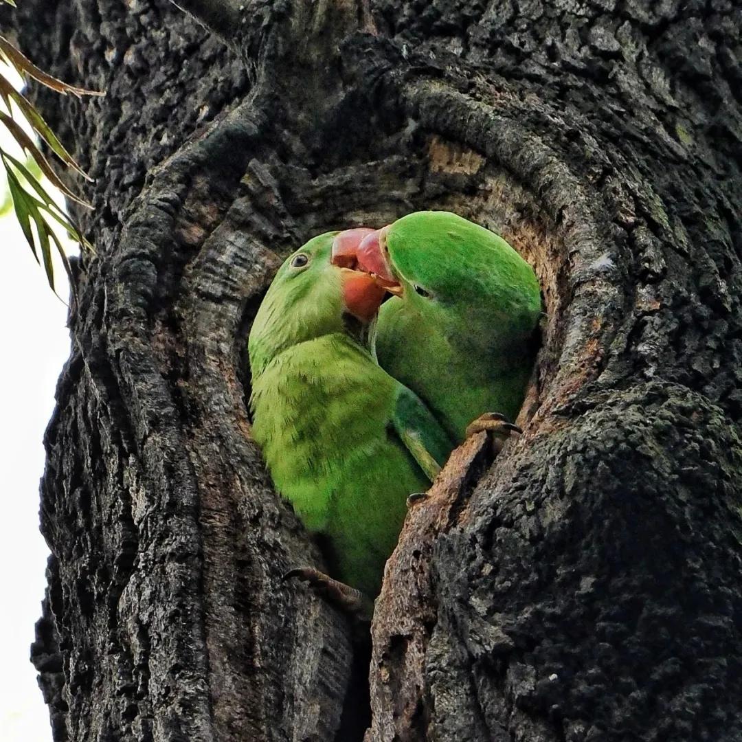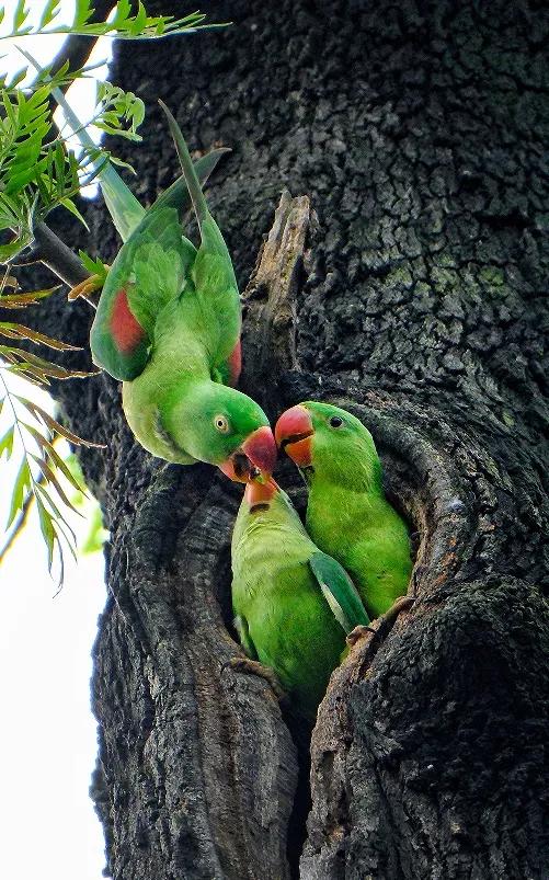 A pair of Alexandrine parrots were captured by a photographer surnamed Huang, who took photos and videos of the birds for four consecutive years. During this period, Huang observed the parrots engaging in various behaviors, including mating, incubating, and raising their young. Let’s appreciate some of the precious moments.