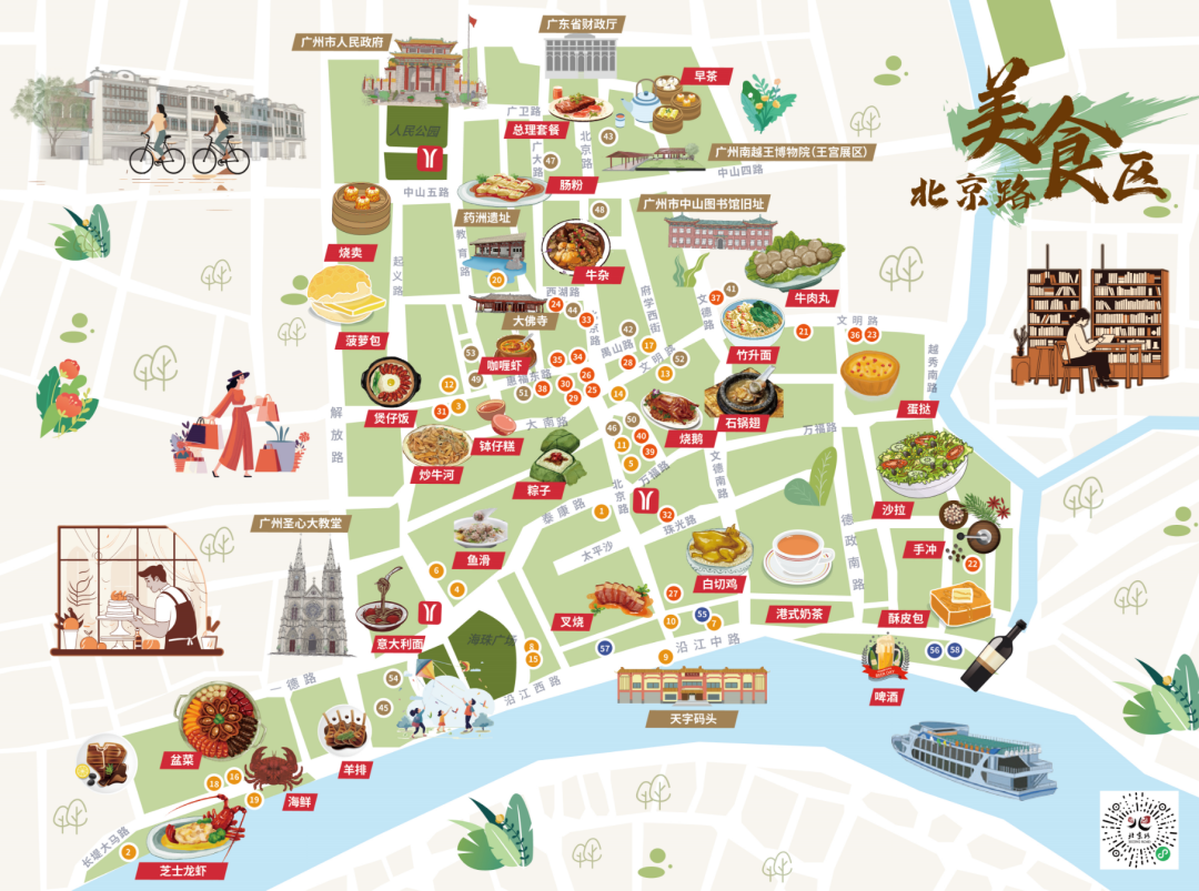 The food map around Beijing Lu, one of the most vibrant business circles in Guangzhou, was released on May 16, with many alluring traditional Cantonese foods recommended, such as dim sum, roast goose, White Cut Chicken and Beef Chow Fun.