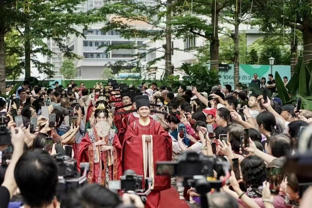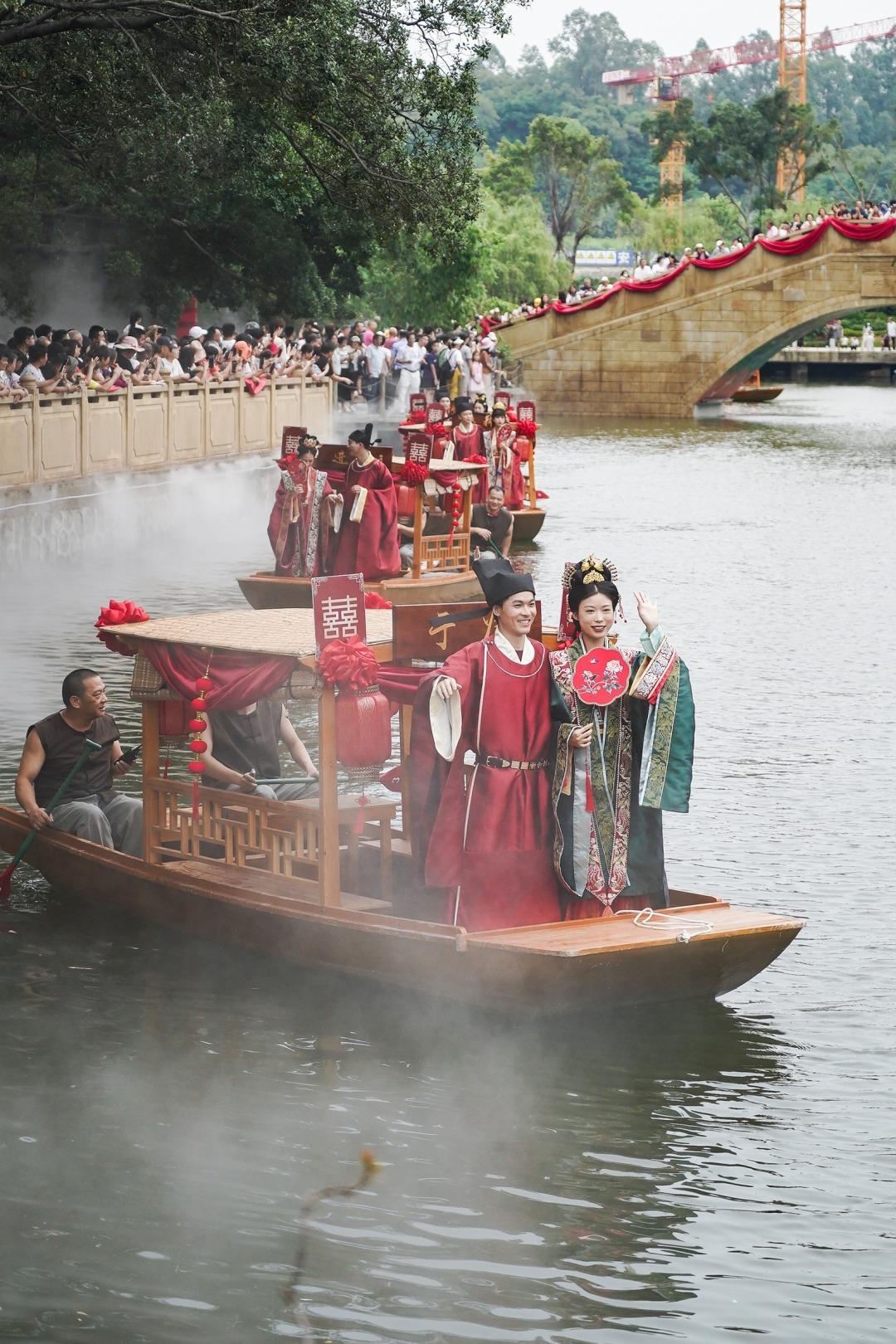 Some local civil affairs authorities also integrated traditional Chinese culture into marriage registration services to attract more young people. In Guangzhou, South China's Guangdong province, a water wedding ceremony themed around Song Dynasty (960-1279) culture was held on May 18, with 10 couples participating in the event and more than 10,000 people watching, according to Guangdong authorities.