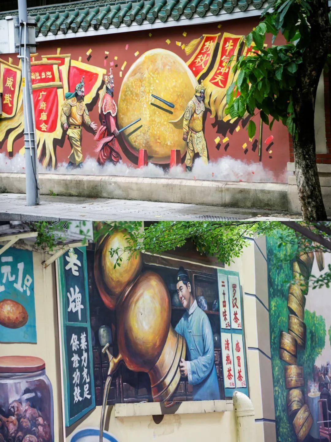 Stretching about 400 meters, Fuxue Xijie locates near Beijing Lu Pedestrian Street. The vivid wall paintings in Fuxue Xijie are full of Cantonese characteristics, such as temple fair, lion dance, herbal tea, and olive carving.