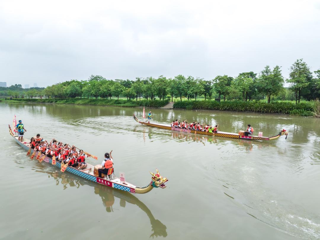 "Extremely fun!" Before the Dragon Boat Festival, a group of teenagers from U.S. high schools on a Sino-US exchange program experienced dragon boat racing with Guangzhou students on the waters of the Haizhu National Wetland Park in Guangzhou.