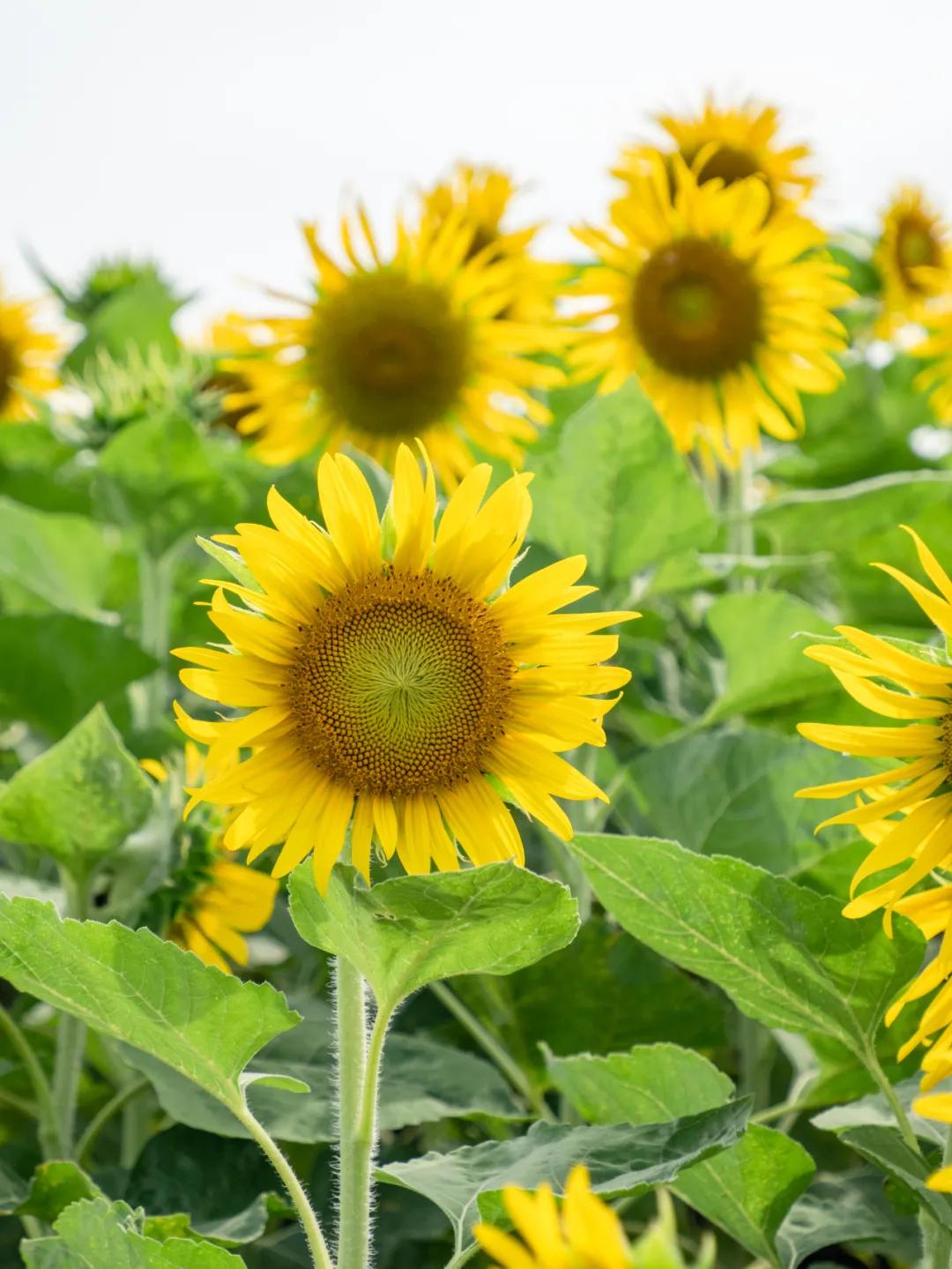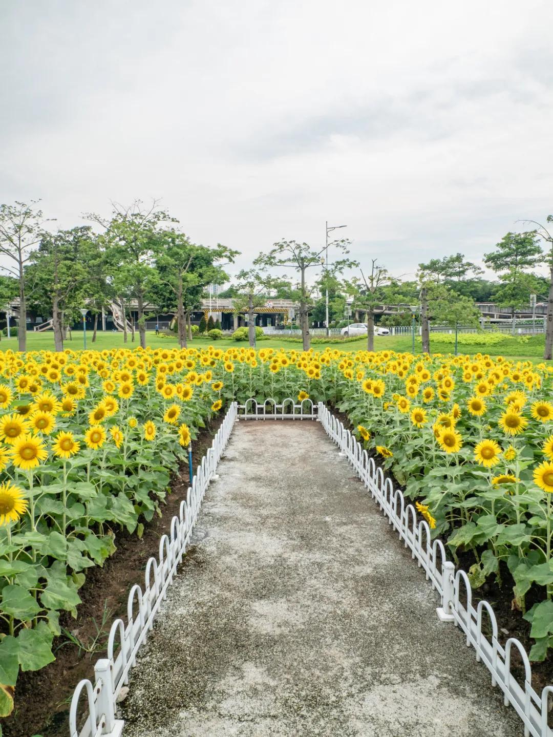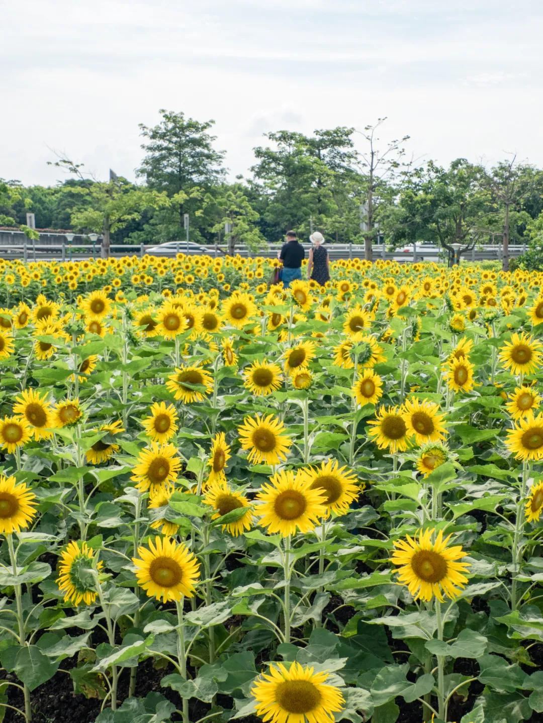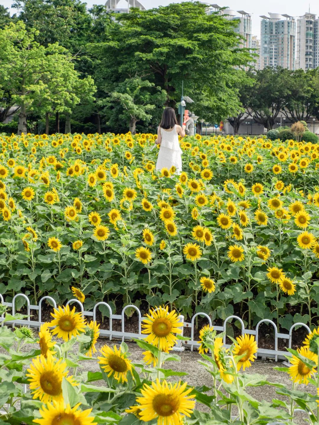 Sunflowers are densely planted along many trails in the park, allowing visitors to get really close with flowers. The flowers, which stand approximately 50 centimeters tall, are particularly suitable for photographs with children.