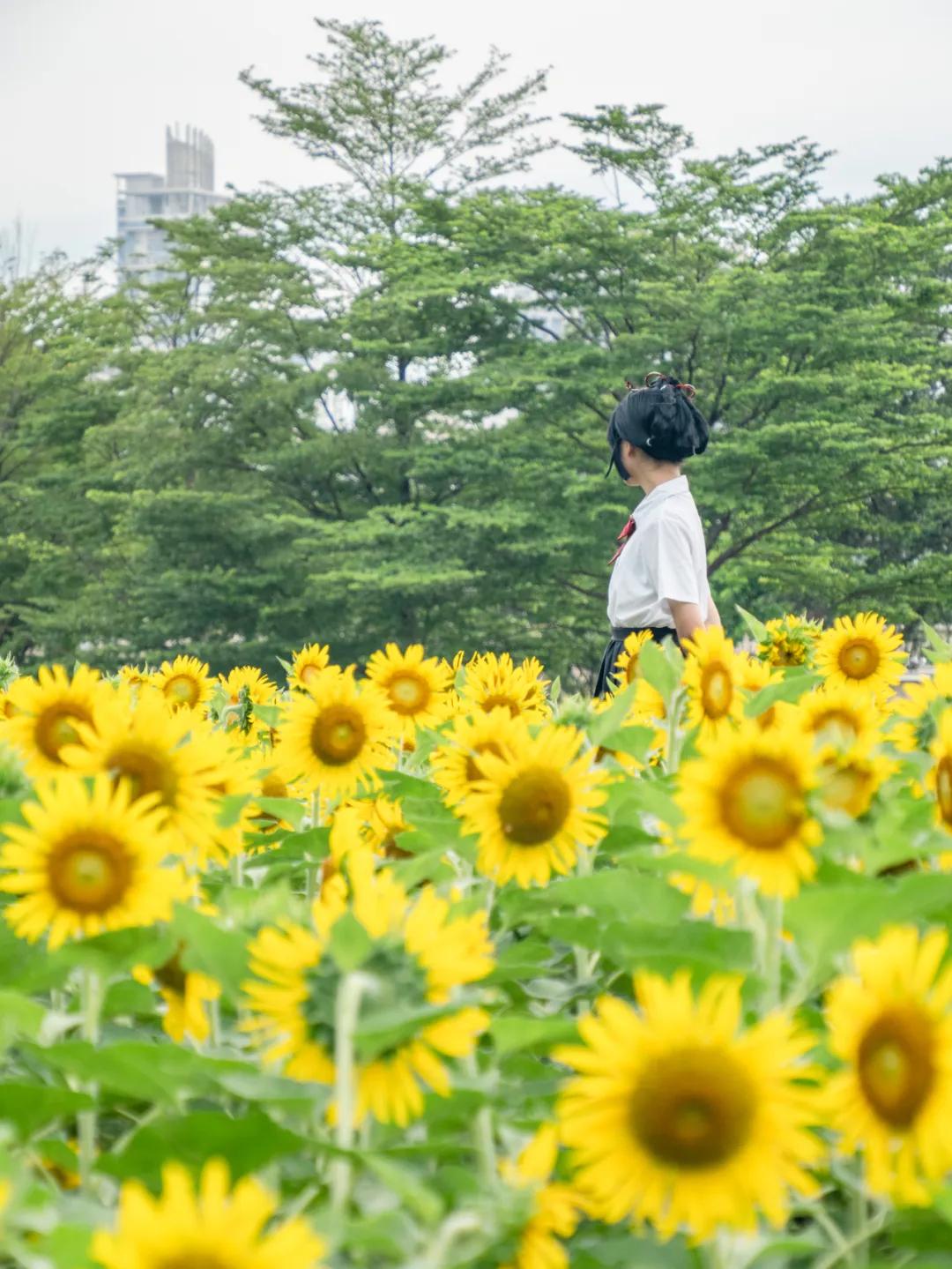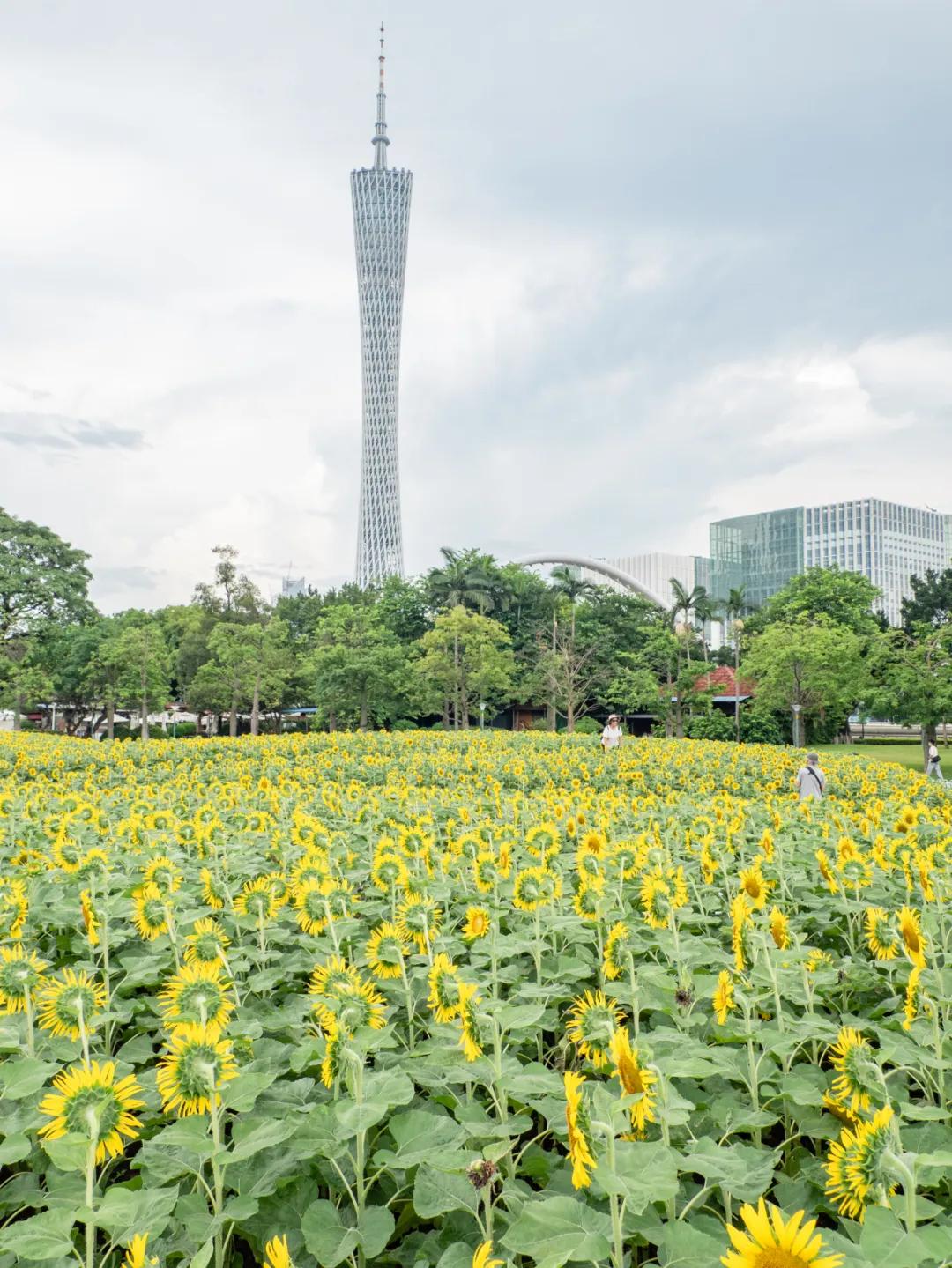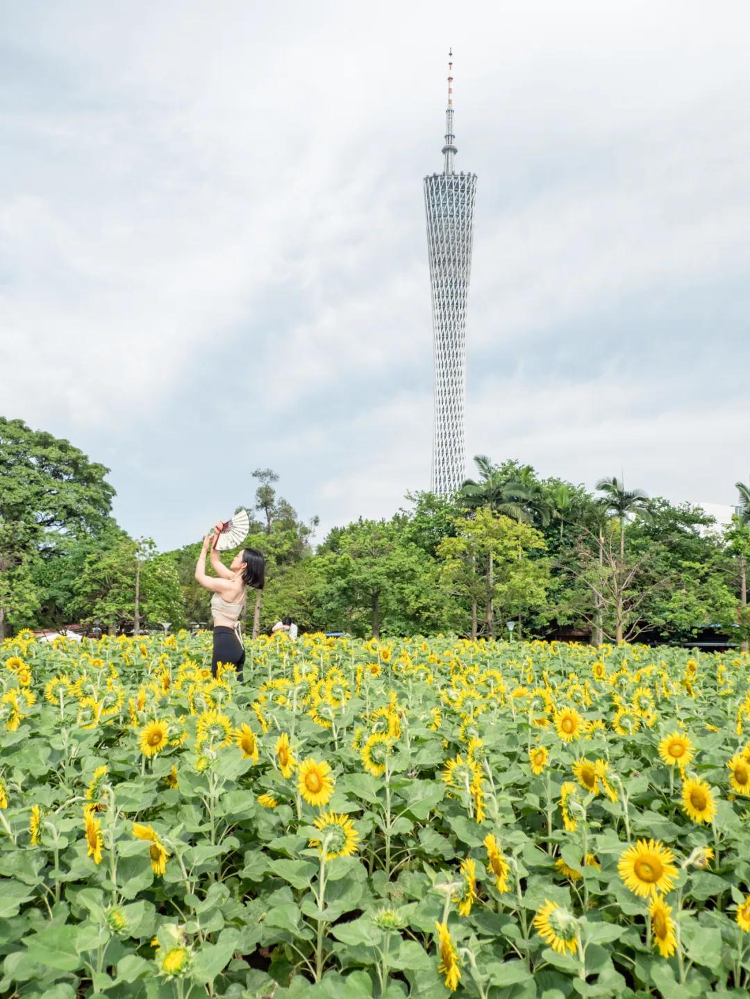 Guangzhou city is in no short supply of flowers throughout the year. In July, visitors can appreciate a sea of golden sunflowers against a backdrop of Canton Tower in Hongcheng Park (宏城公园) on Ersha Island. It is a visual feast of botanical beauty that combines with modern landmark.
