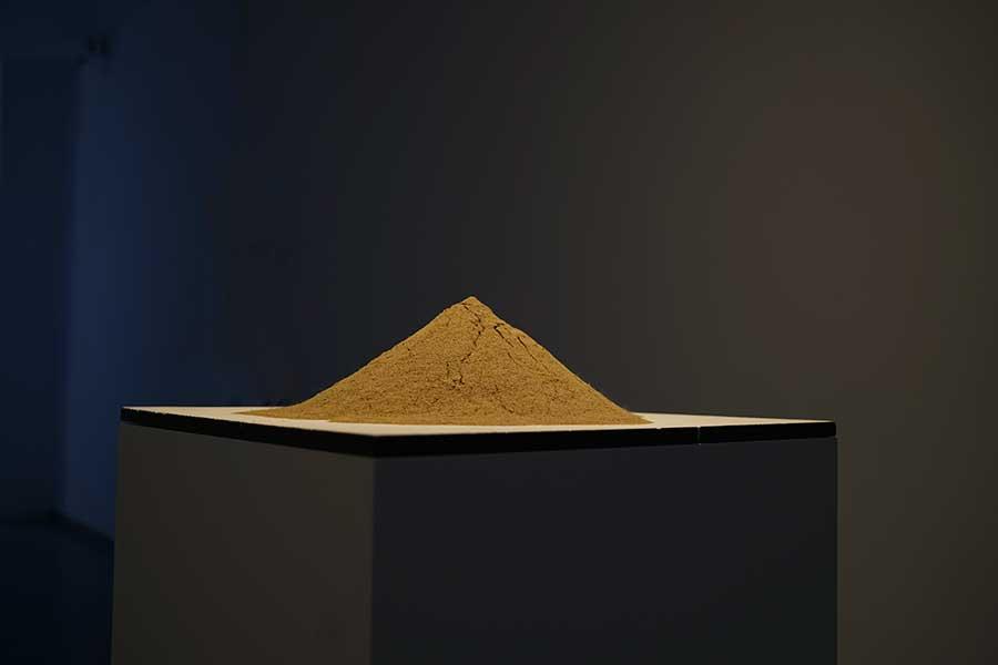 Liu Jianhua is renowned for redefining conventional perceptions of ceramics, a long-standing material in Chinese craftsmanship. Displayed in his exhibition are stacks of "sands" that, upon closer inspection, reveal themselves to be crafted from porcelain.