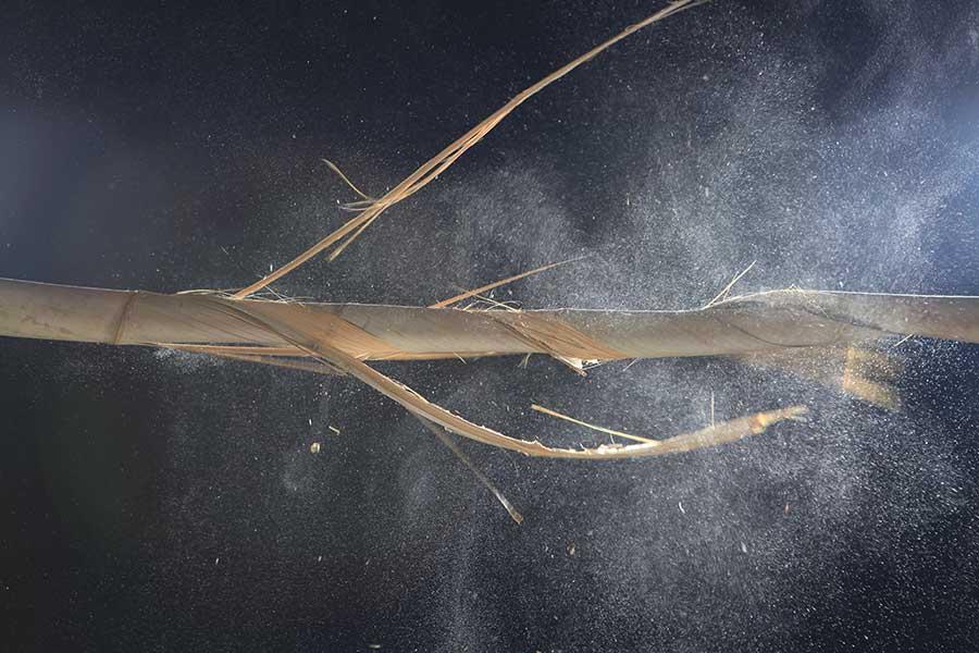 Xiao Yu's video pieces encapsulate the transformation of bamboo, a symbol of integrity, as it is twisted, folded, and fragmented.