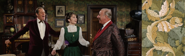 Walking into the exhibition hall, you may notice the unique pattern of the wallpaper, which was used through the film My Fair Lady starring Audrey Hepburn. The wallpaper pattern came from “Acanthus” created by Morris over 140 years ago.