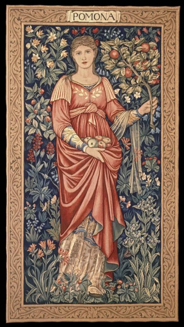 The tapestry panel Pamona gives out a humanistic feeling. Surrounded by flowers and fruits, the mythological figure looks serene and the artwork shows a sense of mystery.