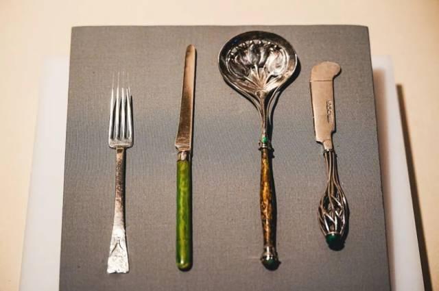 Charles Robert Ashbee, an English architect and designer who was a prime mover of the Arts and Crafts movement, designed a sugar spoon with hollow patterns and a butter knife with silver thread at the bottom.