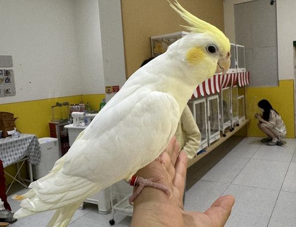 Ms. Su, a tourist from Xi'an, Shaanxi province, keeps a Cockatiel at home. After taking a stroll on Beijing Lu, she came to the bird cafe with her family. While birds seem cute and easy to get close with, it takes patience and proper care to raise them. Therefore, tyros had better learn about the characteristics and habits of them beforehand, according to Su.