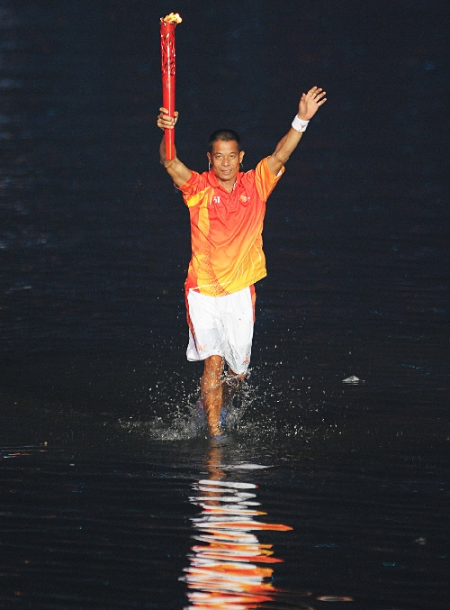 Likewise, during the opening ceremony of the 16th Asian Games in Guangzhou, China's dragon boat team leader Wu Guochong, the first of the last five torchbearers, ran onto the main stage at Haixinsha island straight from the Pearl River.