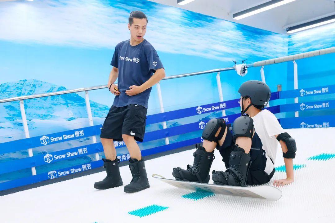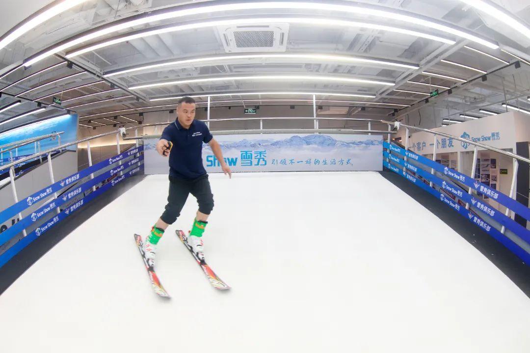 An indoor ski simulator in Baiyun district allows people with no snow experience to practise basic skills before trying out the real slopes. The machine simulates an endless descent down the mountain and is available in several levels of difficulty. The instructor can stop the machine at any time to ensure the skier's safety.