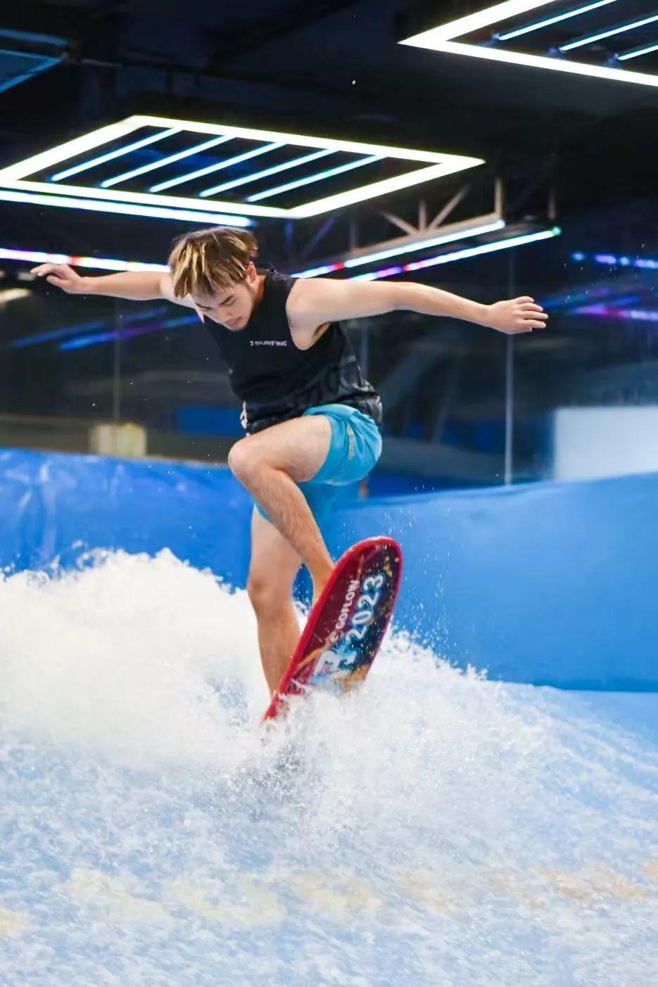 In addition, the club sets up an outdoor surf simulator in August for people to have more surfing experience.