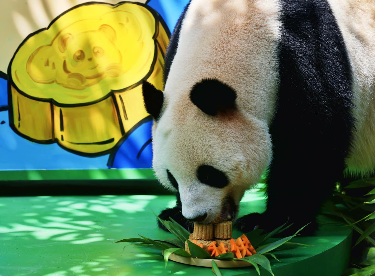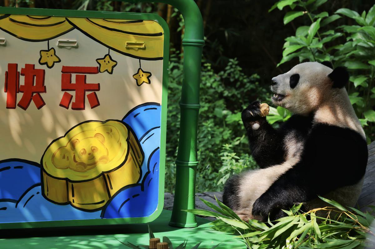 Giant pandas and other wild animals at the Chimelong Safari Park will celebrate the Mid-Autumn Festival, which falls on September 17 this year. (Photos by Zheng Erqi/China Daily)