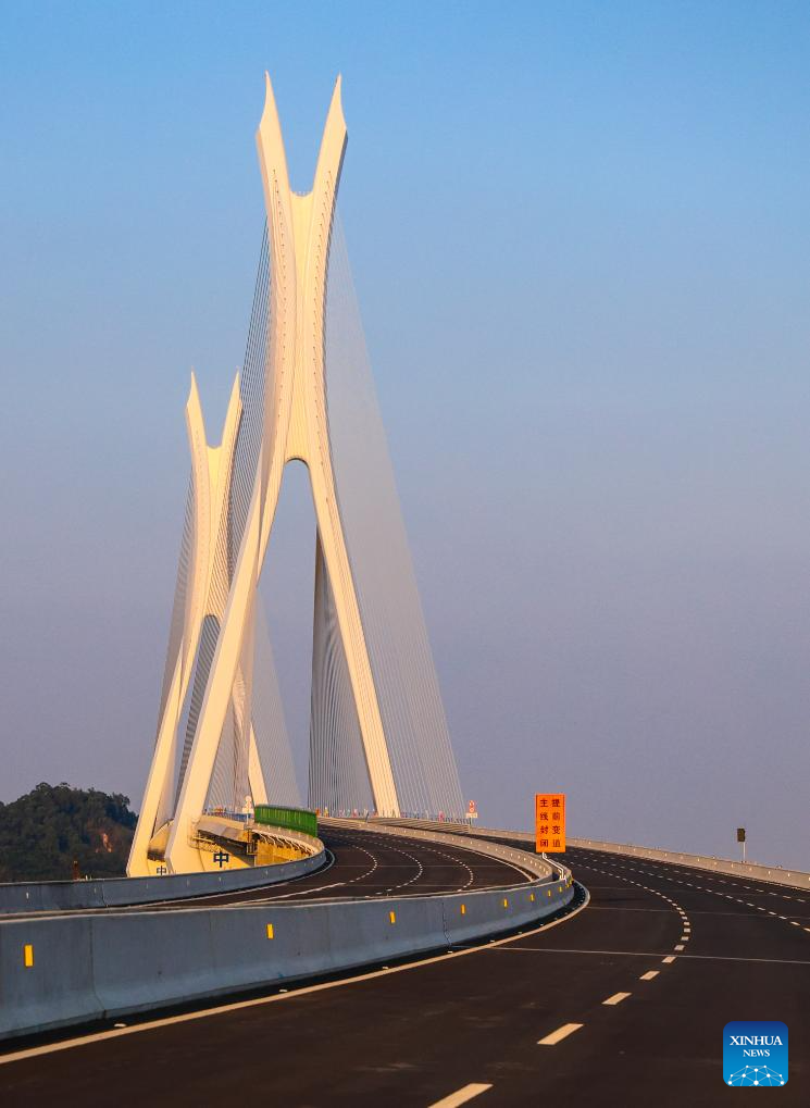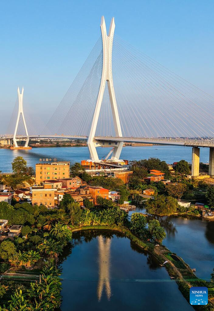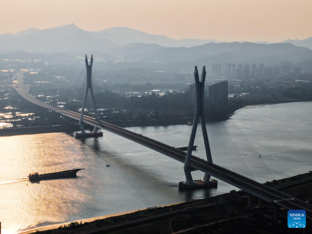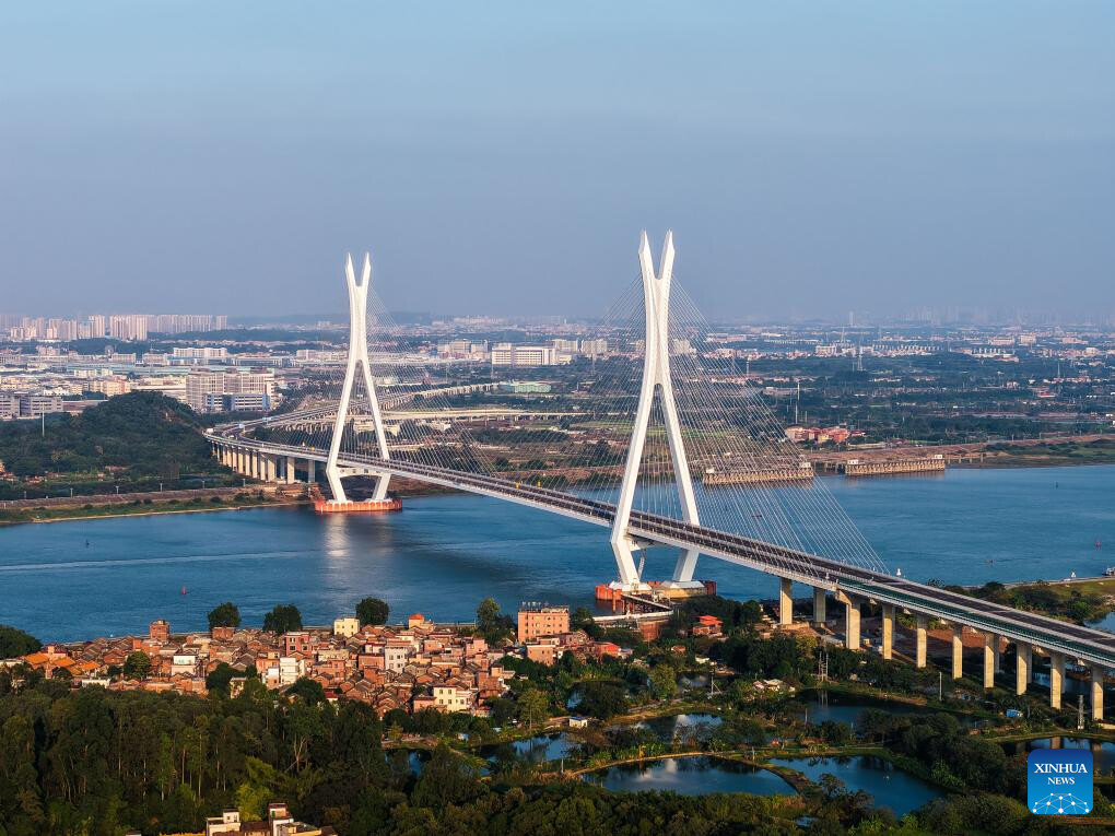 This photo taken on November 21, 2024 shows a view of the Fulong Xijiang super major bridge in Foshan, South China's Guangdong province. Lying in Foshan city, the 1770.6-meter-long bridge connects Gaoming district in the west and Sanshui district in the east. (Xinhua/Liu Dawei)