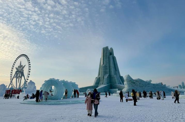 Tourists visit the Harbin Ice-Snow World, the world's largest ice-and-snow theme park, in Harbin, the capital city of Northeast China's Heilongjiang province, December 21, 2024. (Photo/Xinhua)