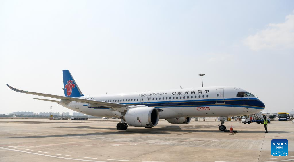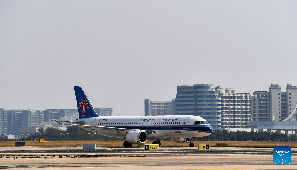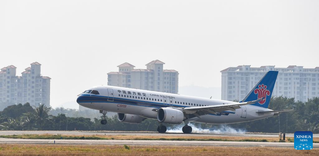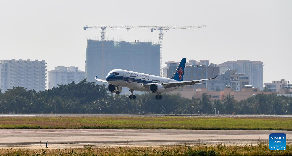 A C919 jetliner carrying 112 passengers from Guangzhou, capital of South China's Guangdong province, landed at Sanya Phoenix International Airport in Hainan province on January 10, marking the success of this aircraft type's maiden commercial flight in Sanya.