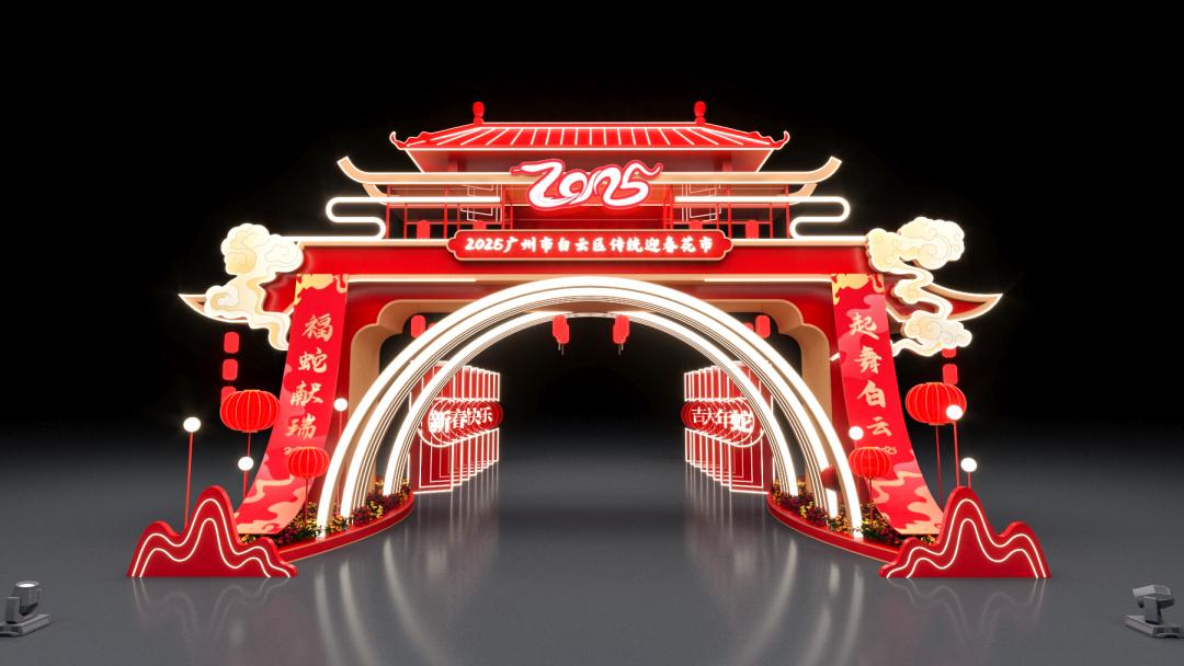 Baiyun flower market features a total of 215 stalls, bringing together New Year flowers, festive goods, public welfare, food, and entertainment. A 4-meter-high, 14-meter-long snake-shaped decoration will wind through the flower market, creating a path of blessings where visitors can walk through and take photos.