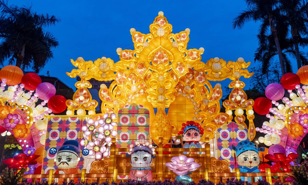 An annual lantern show got its lights debugged at Guangzhou Cultural Park on February 8 for the upcoming Lantern Festival, falling on February 12 this year.