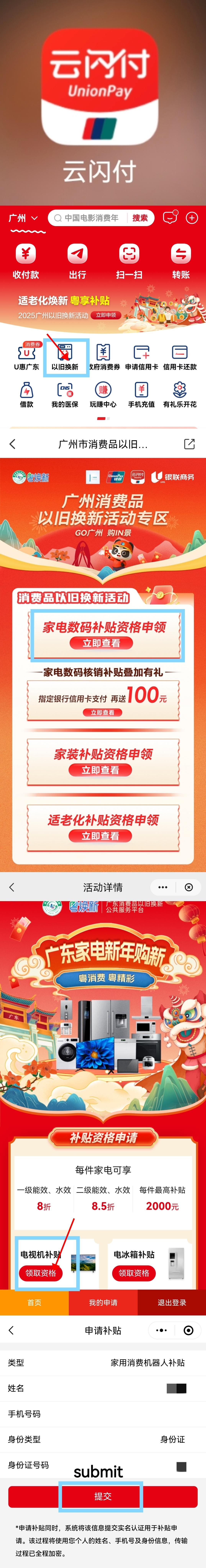 -Register on UnionPay Mobile QuickPass app or WeChat mini program "粤焕新"