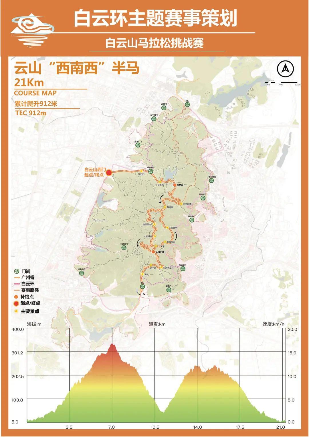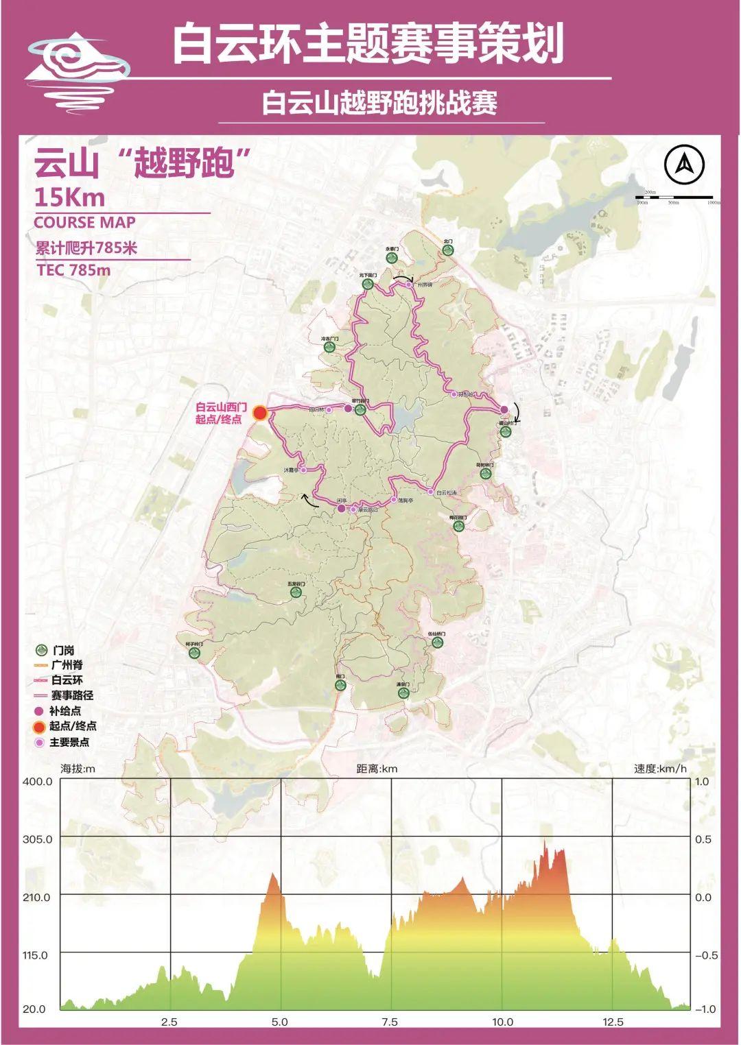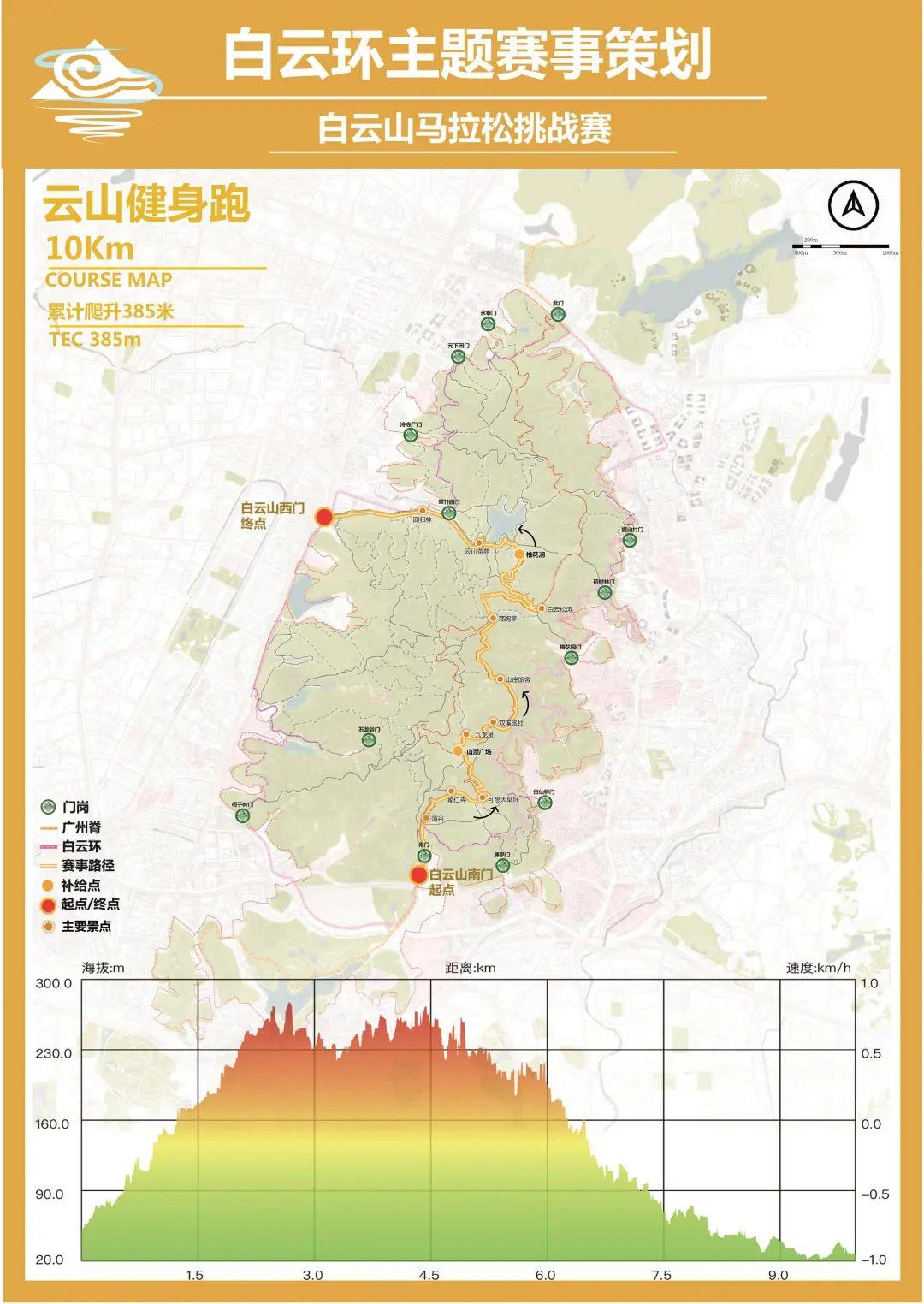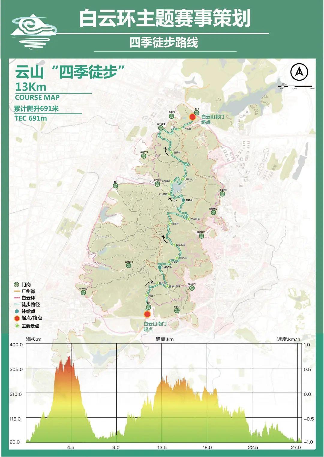 白云山西门-回归林-翠竹园门岗-元下田门岗-广州界碑-孖髻岭-握山村门岗-白云松涛-荡胸亭-摩云路口-闲亭-沐霞亭-白云山西门