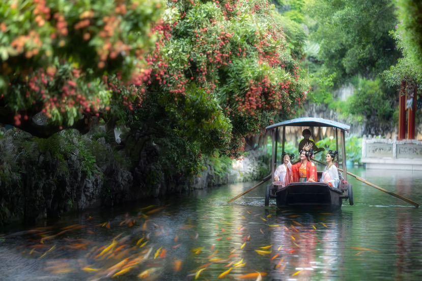 The garden's historic lychee trees, some of which are over a hundred years old, are now laden with fruit. Visitors can see a variety of local lychees in the garden, such as the Guiwei, Huaizhi and Feizixiao. Their ruby-red clusters create a striking contrast against the classical Lingnan architecture — grey-tiled roofs, tranquil pavilions, and winding corridors.