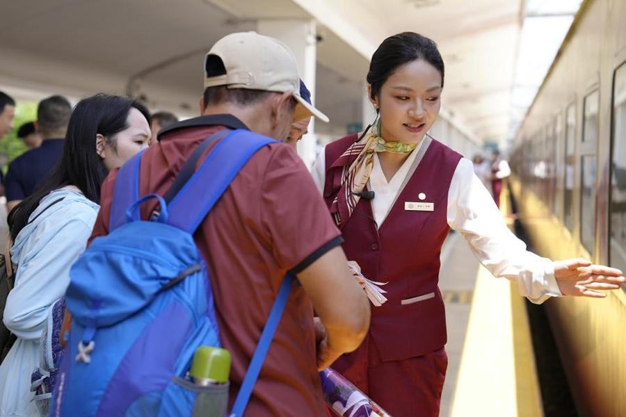 "It is not just a tourist train but serves as a link — it precisely caters to the needs of the elderly who desire comfortable and leisurely travel experiences and also deeply integrates the cultural and tourism resources of Xinjiang, Qinghai and Gansu," said Liu.