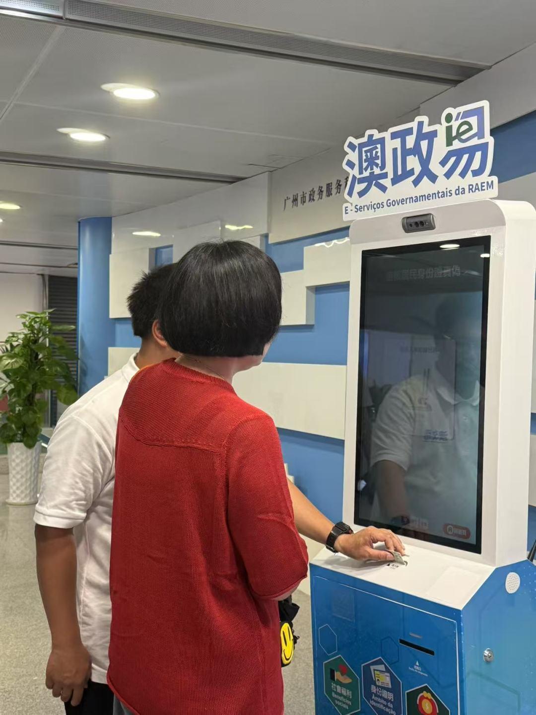The self-service terminal which is jointly led by Guangdong Provincial Government Service and Data Management Bureau and the identification service bureau of Macao, enables Macao residents to handle seven cross-border affairs, including social welfare, identity verification, voter registration, municipal services, tax inquiries, entry and exit, and transportation, covering 11 Macao government departments and bureaus, in four cities in Guangzhou, the capital of Guangdong, Zhuhai, Zhongshan and Jiangmen in the western part of Guangdong beginning June 30, said the identification service bureau.