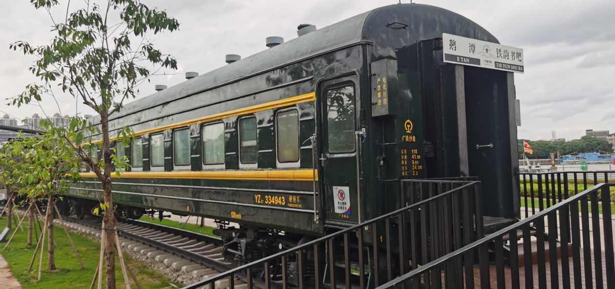 A library built within an old green train carriage opened for service in Guangzhou, the capital of Guangdong province, on August 28. (Photo provided to China Daily)