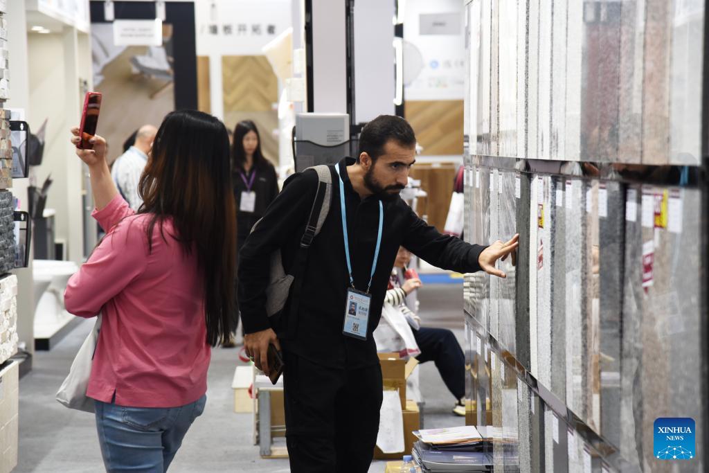 People view building materials at the second phase of the 138th edition of the Canton Fair in Guangzhou, South China's Guangdong province, October 27, 2025. The second phase of the 138th edition of the Canton Fair, showcasing household goods, gifts, decorations, building materials, and furniture, closed here on October 27.