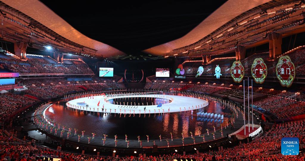 Artists perform during the opening ceremony of China's 15th National Games in Guangzhou, South China's Guangdong province, November 9, 2025. (Xinhua/Lu Hanxin)
