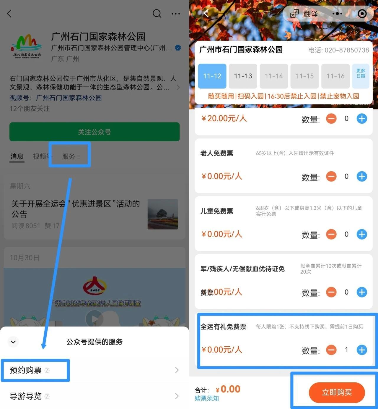 Details: 300 free tickets will be provided daily via official WeChat account "广州石门国家森林公园". Reserve one day in advance. One ticket per person/account.