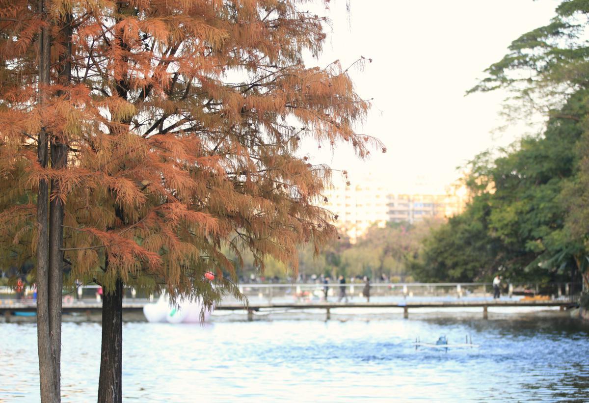 Bald cypress trees in Guangzhou, the capital of Guangdong province, have turned red after cold air swept down from the north over the past week, forming a red line in most parks and wetlands in the city.