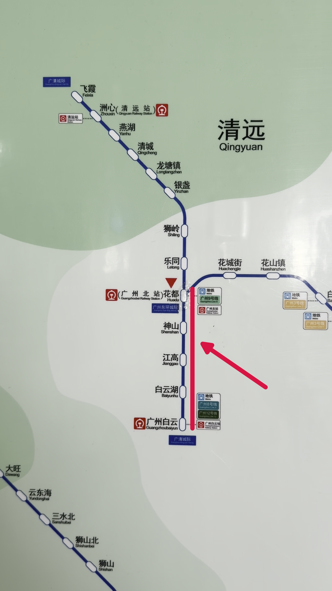 Metro Transfer: Passengers arriving at Guangzhou Baiyun Station via Guangzhou Metro Line 12 are advised to use Exit E (exit only). A walk of about one minute leads directly to the entrance of the Guangzhou-Qingyuan Intercity Railway Southern Extension Line.