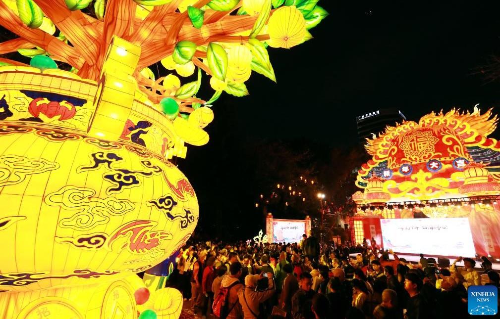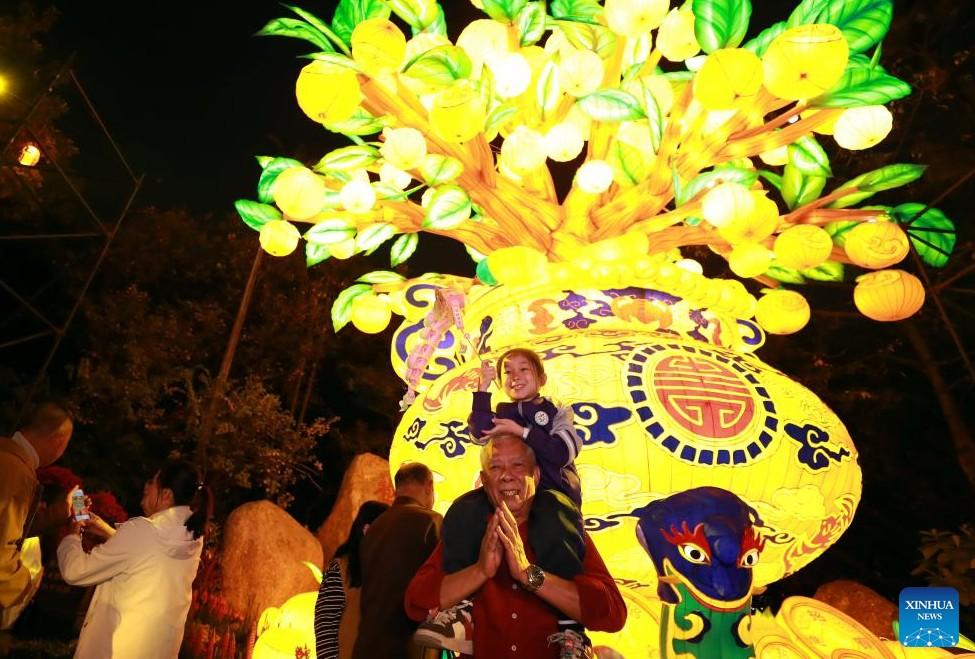 People visit the 2026 Guangzhou Spring Festival lantern show in Guangzhou, South China's Guangdong province, January 30, 2026. The event kicked off at the Yuexiu Park in Guangzhou on January 30, featuring 85 groups of distinctive lantern displays scattered throughout the ten major tourist areas of the entire park, and will last until March 8. (Xinhua/Wang Ruiping)