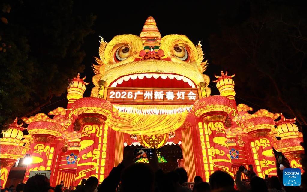 This photo taken on January 30, 2026 shows a scene of the 2026 Guangzhou Spring Festival lantern show in Guangzhou, South China's Guangdong province. The event kicked off at the Yuexiu Park in Guangzhou on January 30, featuring 85 groups of distinctive lantern displays scattered throughout the ten major tourist areas of the entire park, and will last until March 8. (Xinhua/Wang Ruiping)