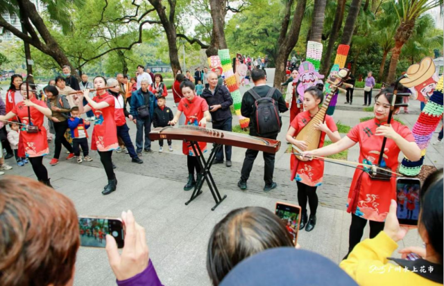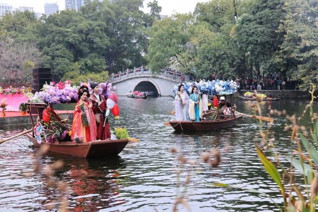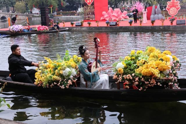 Te Waterborne Flower Market will run from February 12 to 14, with related street and waterfront markets open from February 11 to 15. Now in its largest edition to date, the event has expanded from Liwan Lake to the entire Lychee Bay Scenic Area, the Cantonese Opera Art Museum and Yongqingfang. Visitors can board flower-decorated boats to cruise along the waterway, where floral displays and art installations add to the festive atmosphere.