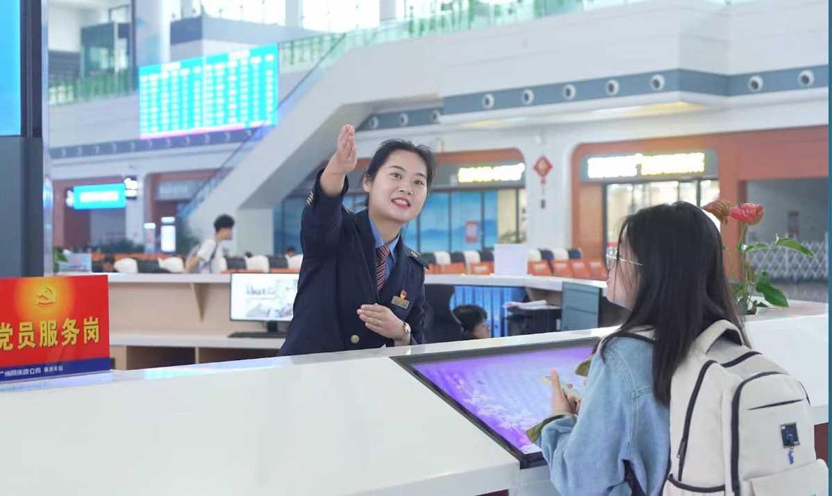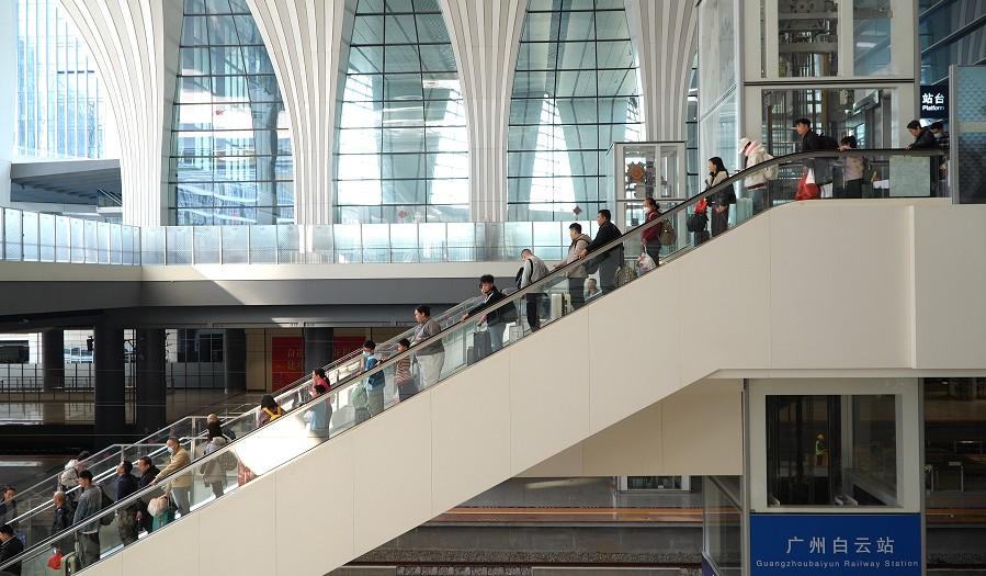 Guangzhou Baiyun Station (广州白云站), one of the major railway stations in Guangdong, has enhanced transfer efficiency by adding new entrances and improving passenger waiting and travel facilities, enabling a five-minute rapid transfer within the station.