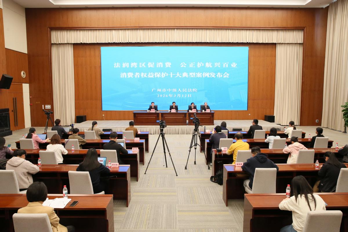 Guangzhou Intermediate People's Court releases 10 typical cases focused on key consumer-related areas such as prepaid consumption, e-commerce live-streaming, medical aesthetics, and gaming consumption on March 12. (Photo provided to China Daily)