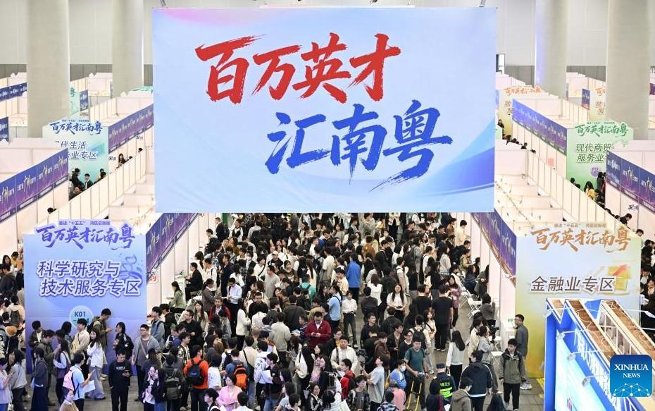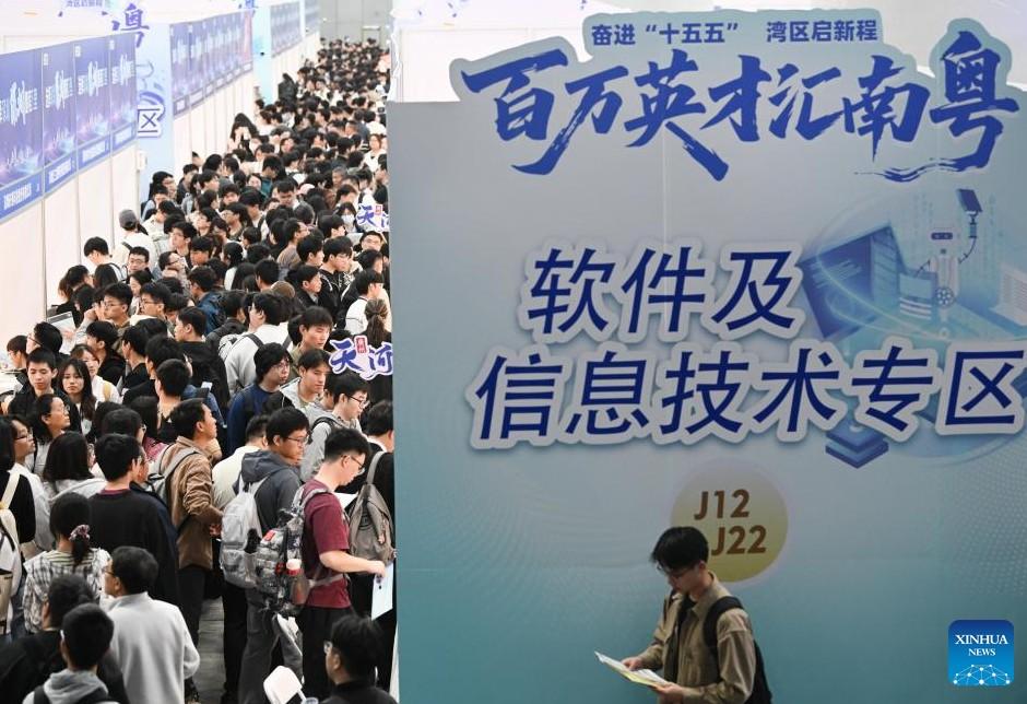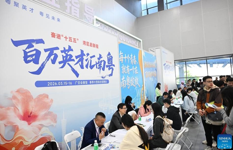 This photo taken on March 15, 2026 shows a job fair in Guangzhou, South China's Guangdong province. The job fair kicked off here on March 15, with the participation of more than 2,000 employers and providing about 85,000 jobs. (Xinhua/Deng Hua)